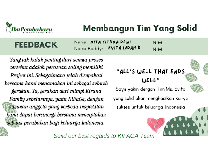 On the other hand, Ms. Evita's team seems to be powerful as the project will go smoothly and based on the plan as the team has qualities to energize every agenda to do. The strength of each member of the team will be able to run and synergize the every event on schedule. There are some points I could learn from her team point if view. First, open communication to find the same problem statement by sharing some ideas and opinion to get the same vision for running the project.